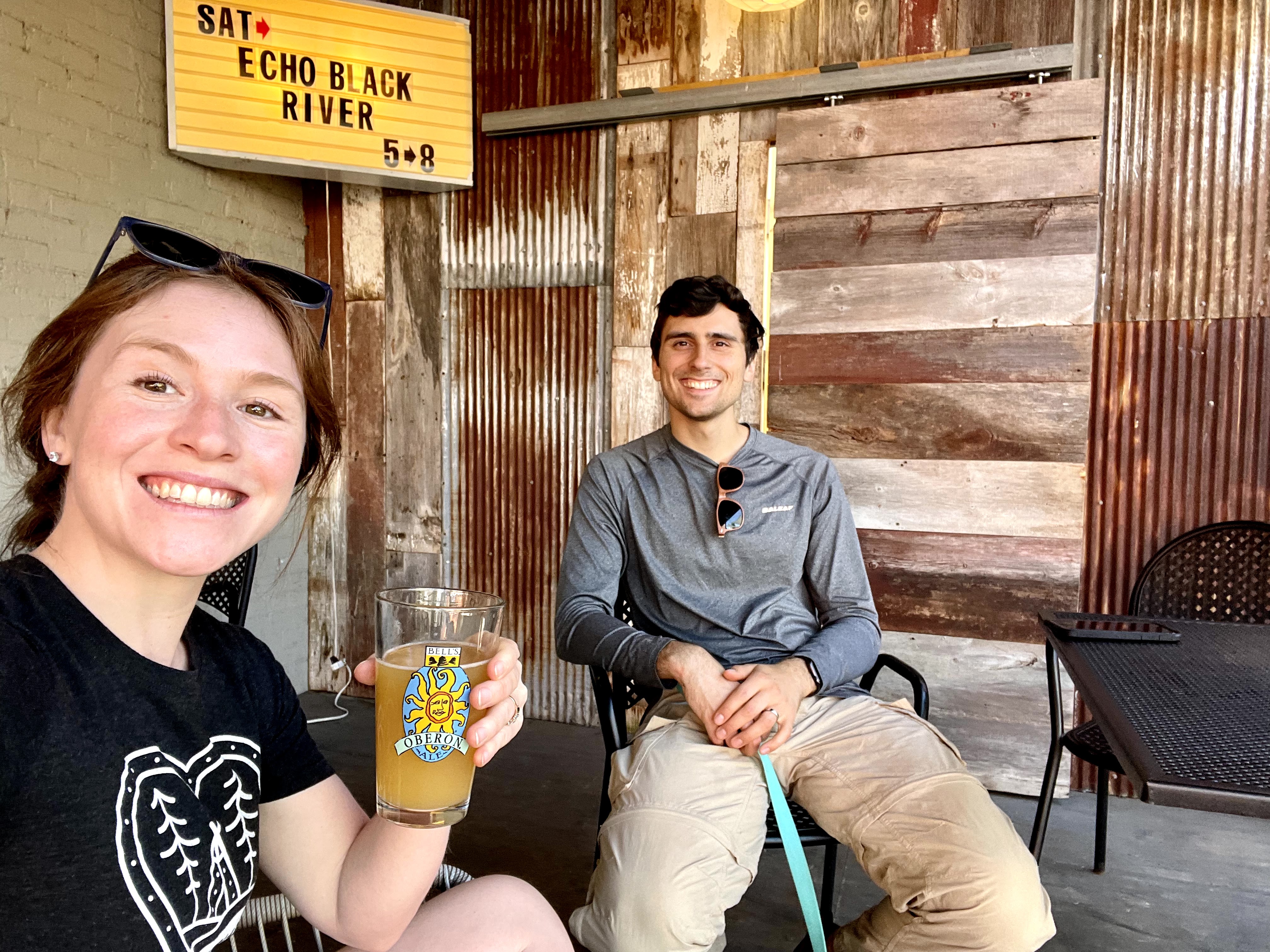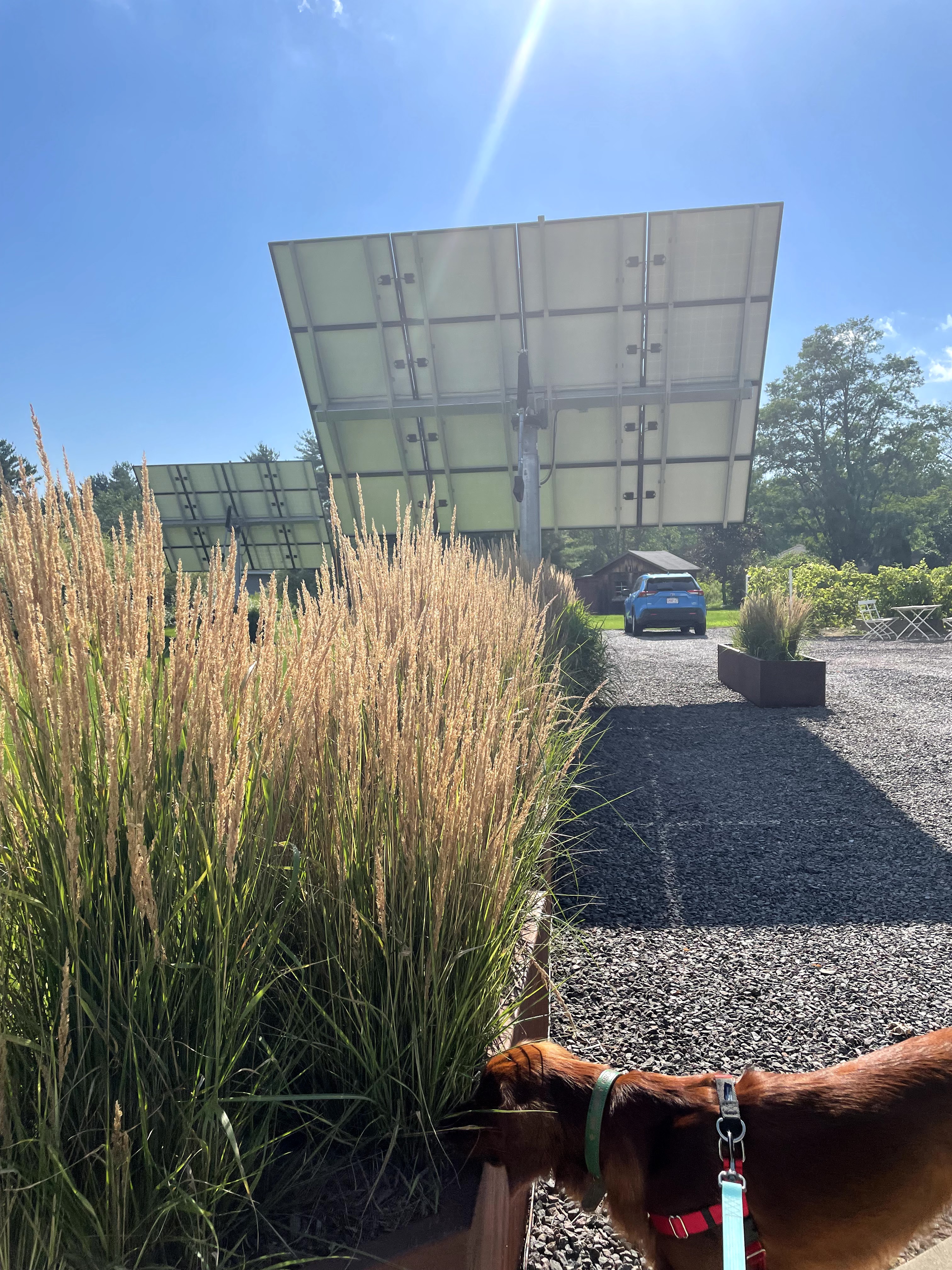 Our first stop in town was the Grounded Patio Cafe which looked like it had the right combo of wifi and dog-friendliness to meet our Friday work + dog parent needs, and did it ever! By Saturday afternoon we’d already been three times. Great coffee, breakfast and lunch sandwiches, pastries, and even a selection of beers on tap which hit the spot after our 4 mile hike on Saturday at the nearby Bicentennial trail. Note to self that I really like the Pompeii from Toppling Goliath (mango & pineapple, mmm 😋). Other food spots to note include Red Pines Bar and Grill, which we went to on Friday night and saw a beautiful sunset before the mosquitoes came out.